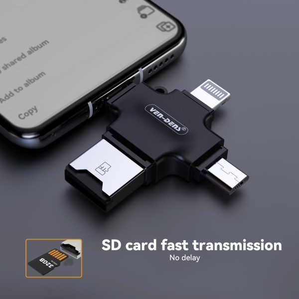 The 4 In 1 Mini USB OTG To USB 2.0 USB C is the perfect companion for fast and reliable file transfer. With its high-speed USB interface and compatibility with Micro, Type C, Lightning, and SD/SDXC TF memory cards, this small and compact card reader is easy to carry. And with its ability to adjust to your memory card's speed, you can trust in seamless copy, download, and backup experiences.