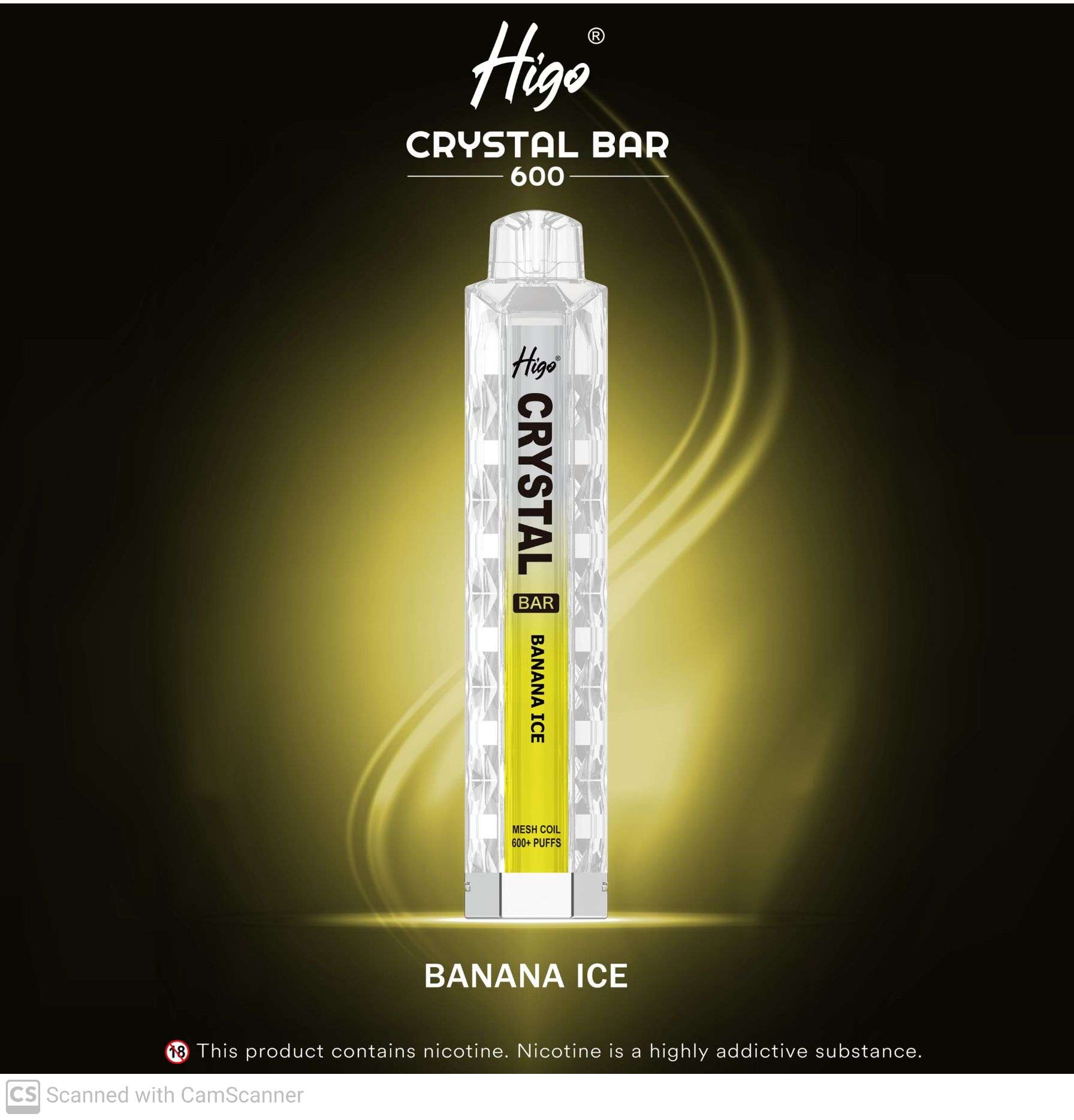 Introducing HIGO CRYSTAL 600 in a convenient, 10s pack, featuring the refreshing flavour of Banana Ice. With each puff delivering a satisfying vaping experience, this disposable vape offers 600 puffs per device. Perfect for on-the-go enjoyment.