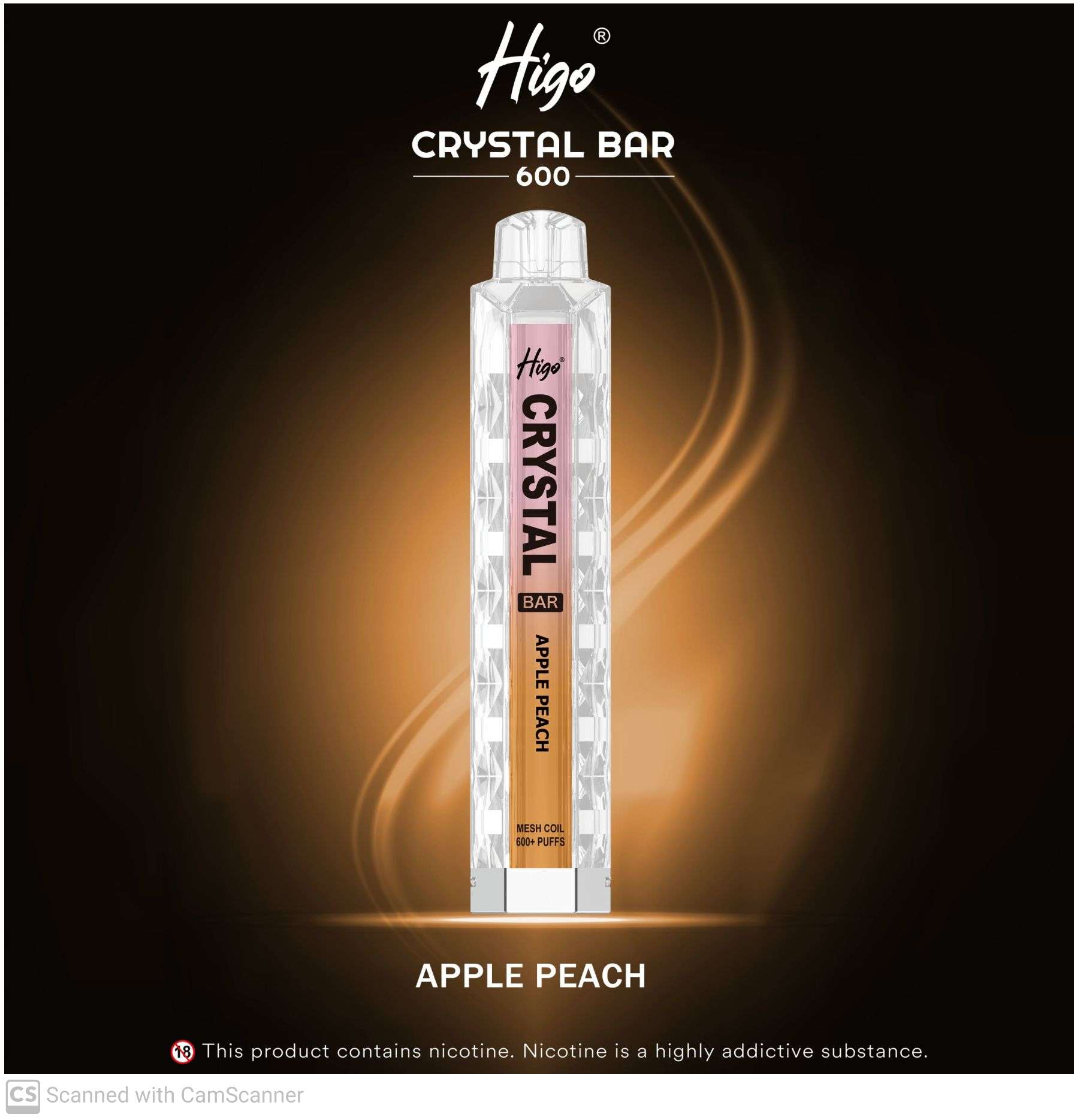 Introducing HIGO CRYSTAL 600 in a convenient, 10s pack, featuring the refreshing flavor of Apple Peach. With each puff delivering a satisfying vaping experience, this disposable vape offers 600 puffs per device. Perfect for on-the-go enjoyment.