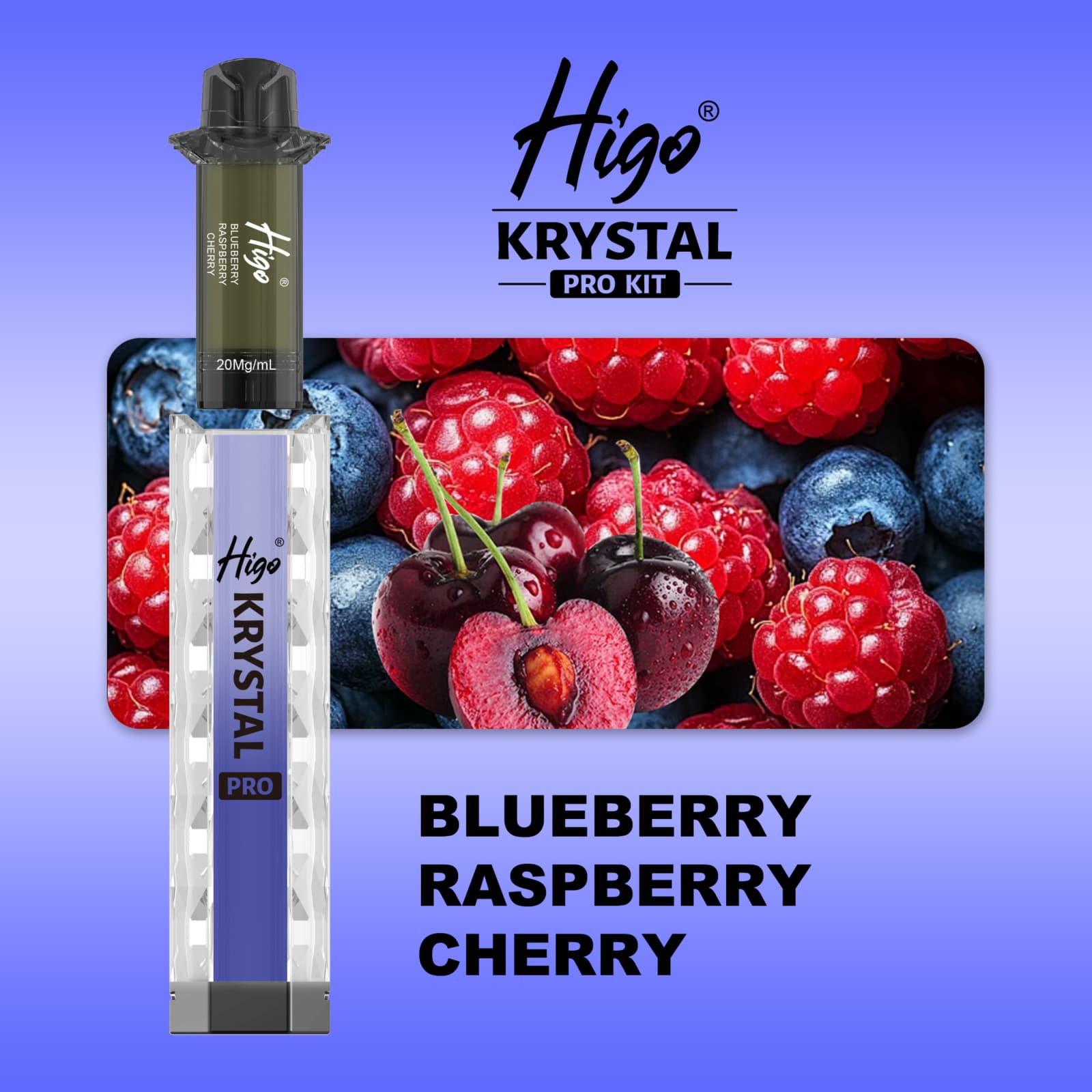 Higo Krystal pro kit 600 puffs - Blueberry Raspberry Cherry